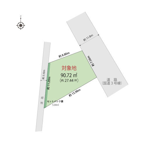 | 接道状況 | 東側公道幅員約11.8mに約7.5m接道 西側公道幅員約3.1mに約11.2m接道 |